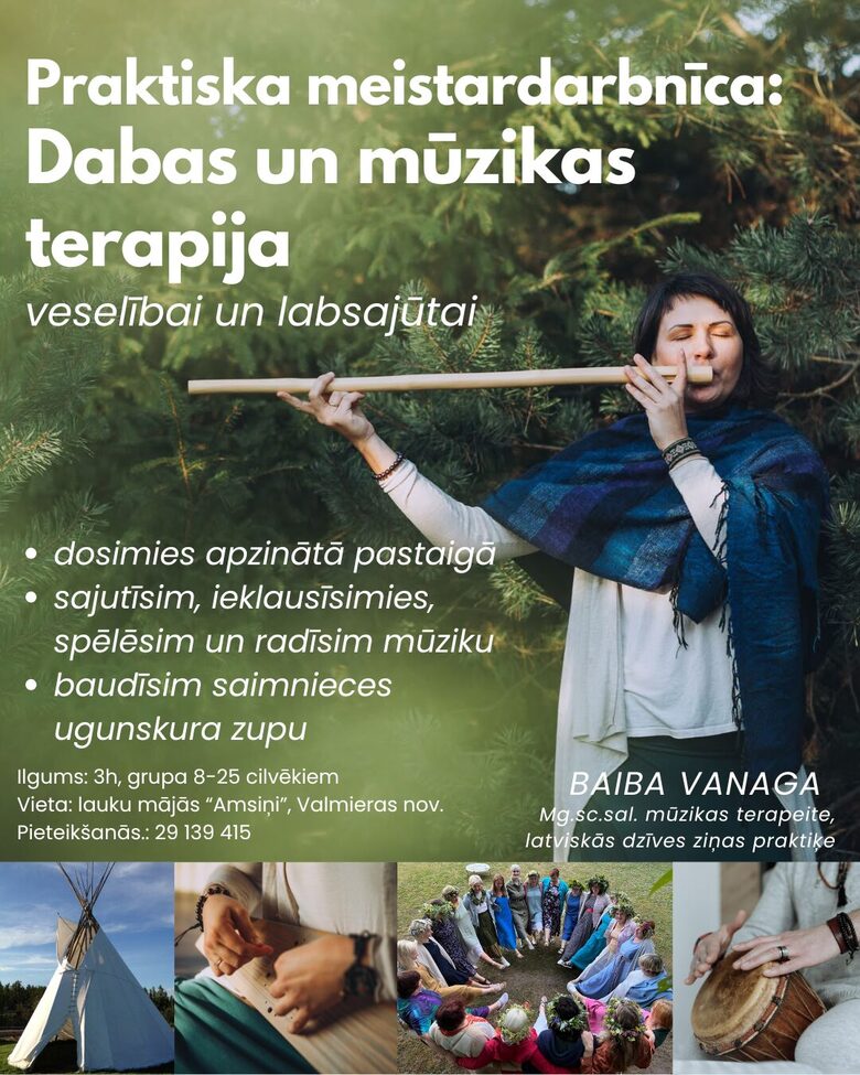 Muzikāla meistardarbnīca DABAS UN MŪZIKAS TERAPIJA veselībai un labsajūtai